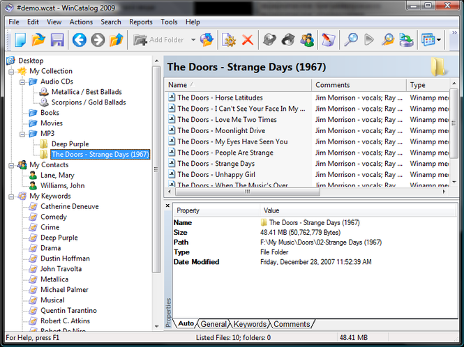 WinCatalog usnadňuje zpracování velkých kolekcí souborů, jako je hudba, filmy, obrázky a dokumenty. Hledání různých médií pro soubory, které chcete! Bez ohledu na to, zda vaše soubory jsou uloženy na CD, DVD, flash paměťovou kartu nebo pevný disk, najde WinCatalog přesně to co hledáte během několika sekund. Hledání zahrnuje MP3 tagy, obsah ZIP archivu a další.