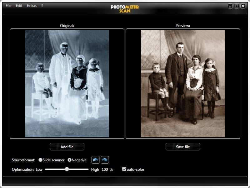 S profesionálním Photomizer Scan 2 software můžete snadno upravovat naskenované fotografie, naskenované diapozitivy a dokonce i naskenované negativy. Užijte si více barevné snímky.
