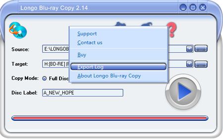 Longo Blu-ray Copy software je jednoduchý a výkonný Blu-ray software pro kopírování filmů Blu-ray. Je možné kopírovat jakékoliv Blu-ray filmy na pevný disk počítače jako složku BDMV nebo ISO soubor, ale také může pálit Blu-ray filmy na prázdné BD disky. Longo Blu-ray Copy dává poměr 1:1 klon originálního Blu-ray filmy a umožňuje uživatelům kopírovat pouze hlavní film pro úsporu místa a času.