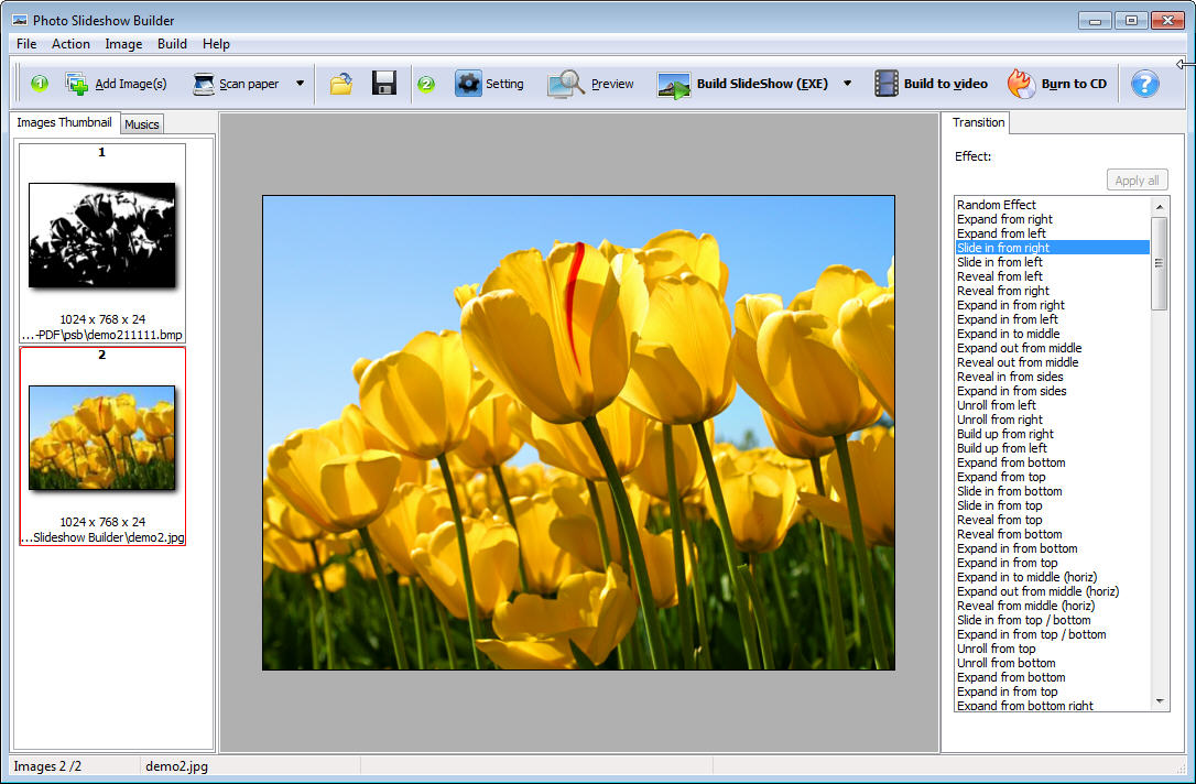 Boxoft Photo Slideshow Builder je software, který může být použit k dát tisíce statických fotografií nebo obrázků do dynamických prezentací. Můžete přidat soubory ve formátu MP3 nebo dokonce nahrávat zvuk na výstupu profesionální prezentace a výstupních formátů může být samostatný spustitelný soubor (EXE), spořič displeje obrázek (SCR), video (AVI / WMV / MPEG), nebo vypálit na CD nebo DVD.