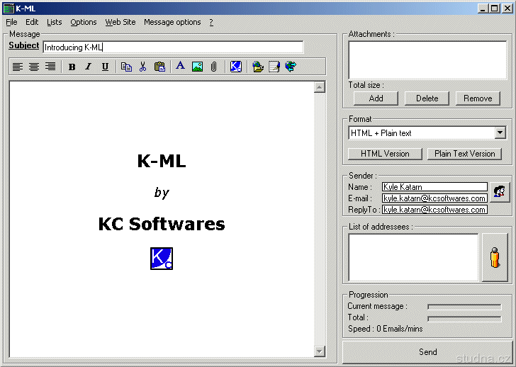 Program umožňuje odesílání personalizovaných zpráv elektronické pošty členům konferencí. Podporuje HTML i textový formát zpráv, součástí jsou připravené PHP skripty pro integraci s webovými stránkami umožňující uživatelům přihlásit nebo odhlásit odběr zpráv. Podporuje mail merge, více seznamů členů, přílohy, odstranění duplicit.