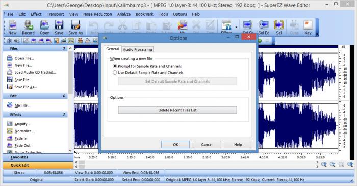 SuperEZ Wave Editor je editor vizuální hudební soubor určený pro domácí nahrávací studio, a pro lidi, kteří teprve začínají s editaci zvuku. Můžete vyjmout, kopírovat a vkládat části záznamu. Kromě editace, nahrávání, to umožňuje přidávat speciální efekty, filtry, převod formátů, nastavení stereo kanálů a upravovat zvukové informace o souboru.