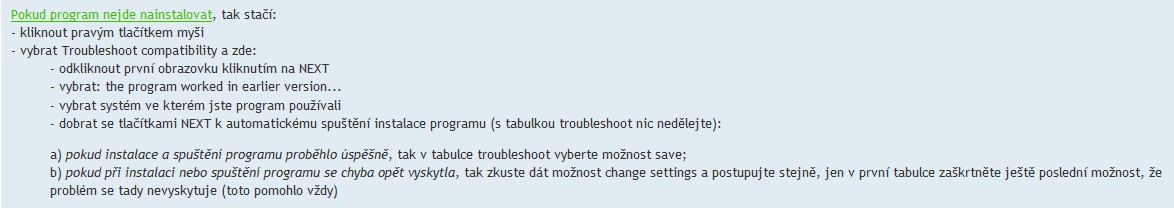 zkus ještě tohle.....pravým tl. myši klikni na program který chceš instalovat (přhlášen musíš být jako administrátor)a pokud ti to fungovalo pod XP tak tam potom zvol tuto možnost.