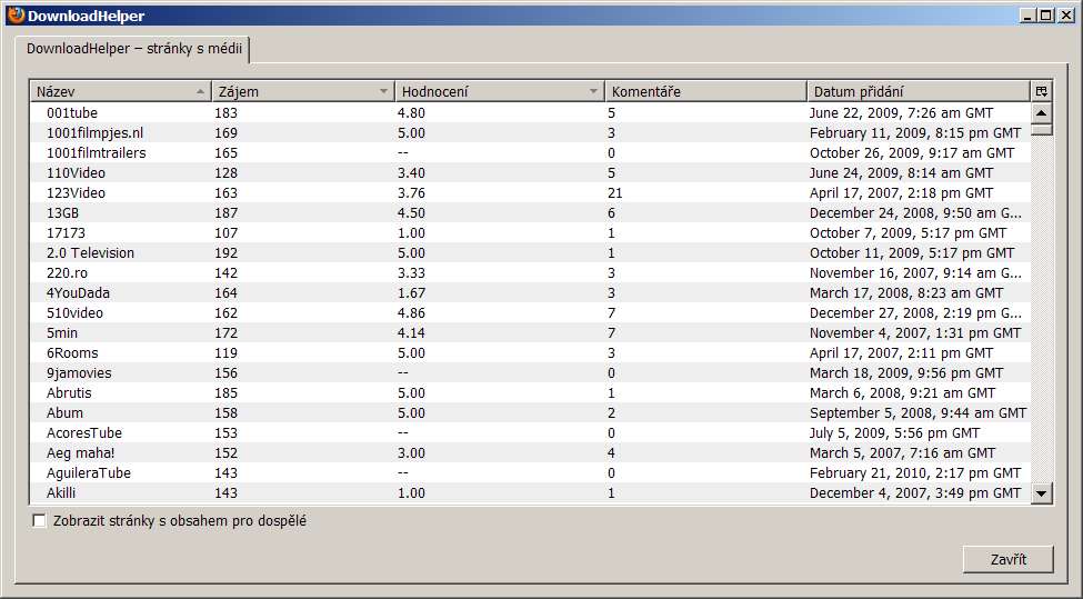 a když na ni kliknu, dostanu jen seznam podporovaných serverů: