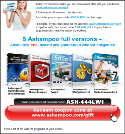 Prišiel mi mail od Ashampoo na stiahnutie free verzií programov, ja ich mám, takže mi ich netreba, ale v maily sa uvádza, že treba informovať kamarátov, tak informujem.