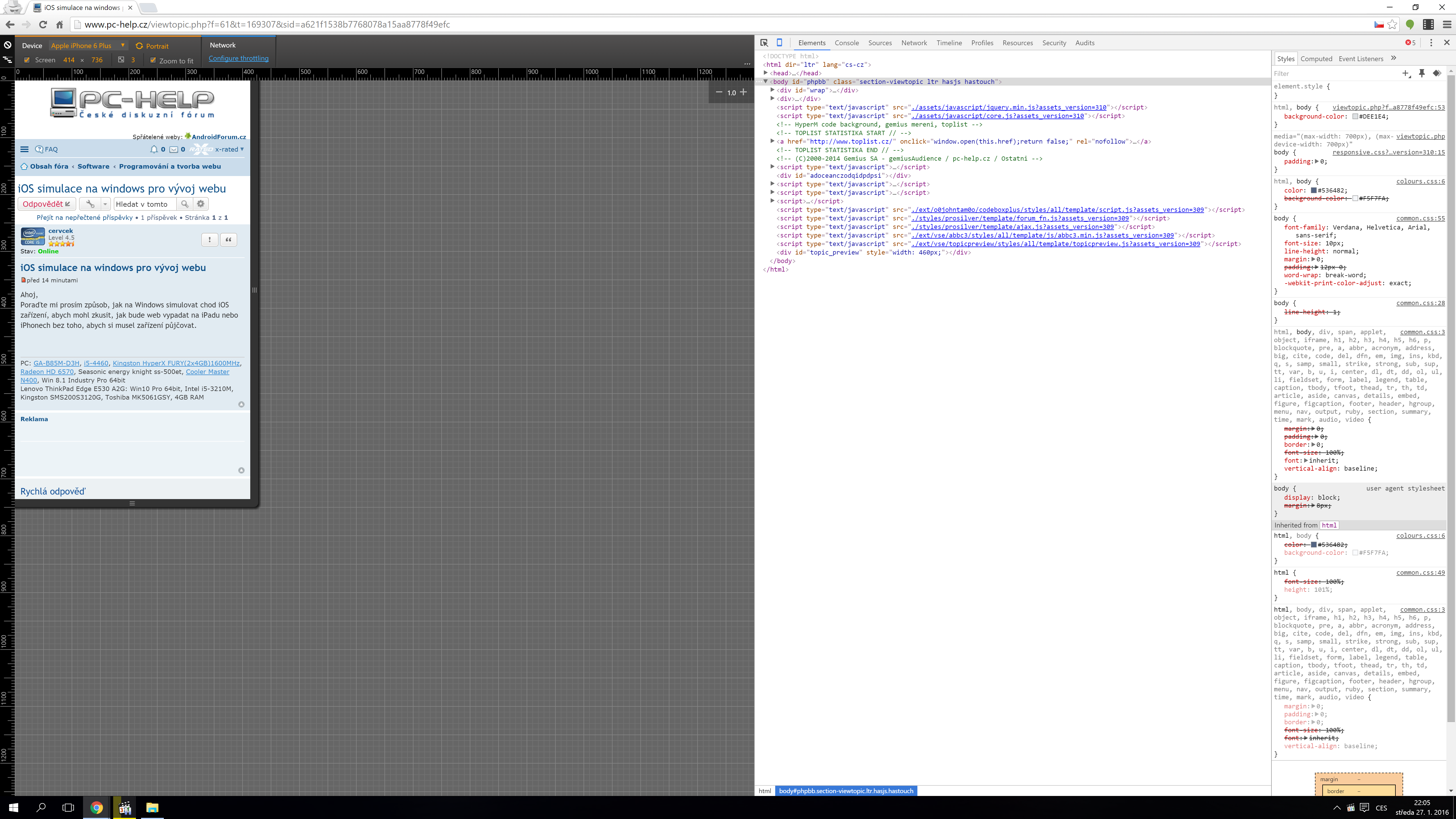 iOS simulace na windows pro vývoj webu Vyřešeno