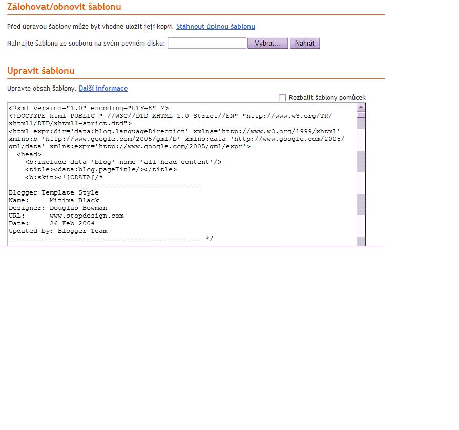 Zdravím, lidi poraďte mi, už jsem z toho zoufalej. Podle Tohoto návodupoptřebuji tem script vložit do Blogu, aby se mi tam zobrazoval překladač Google, ale vůbec netuším jak. Tam se mi zobrazí upravit HTML, ale jak je pro mne španělská vesnice. Už se mi podařilo tem blog úplně zlikvidovat a musel jsem tam vše dávat znova a to bych nerad opakoval. Díky všem.