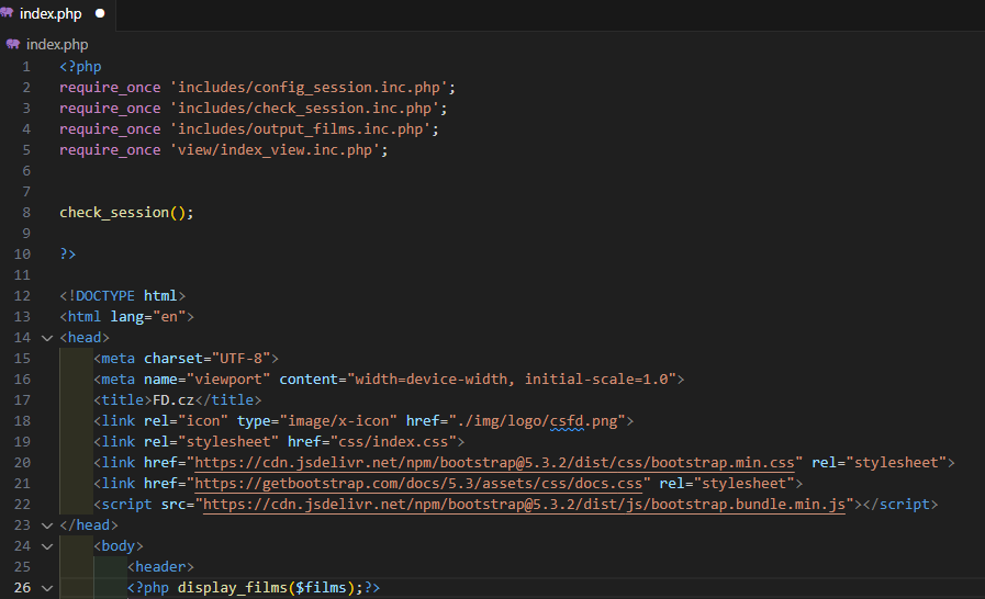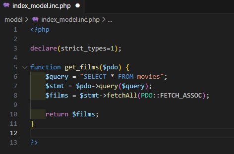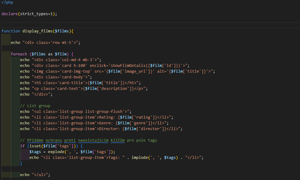 6) Zavolá funkci display_films(), která je definovaná v index_view.inc.php, který je vložený, takže zatím v pořádku