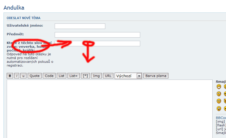 Také jsme jeden čas bojovali se SPAMboty a vyřešili jsme to aplikací AntiSpam MODu, který se při registraci ptá na 1 jednoduchou otázku typu "Jaké je hlavní město ČR?". V kombinaci s tím, že mohou přispívat pouze registrovaní uživatelé, se jedná o ideální řešení. Od té doby naprostý klid, problémy se SPAMboty pouze výjimečné. Mohu jen a jen doporučit!Stene píše:Zdravím pánové. Tak se mi na fórum dostali i ti neřádi, roboti a spamují porno linky jako vzteklí. Jenže, jak se jich zbavit. Řešil někdo tuto problematiku? Módy ani zkoušet nebudu, podle mě to stejně nepomůže (ale netvrdím to, ozkoušené to nemám).