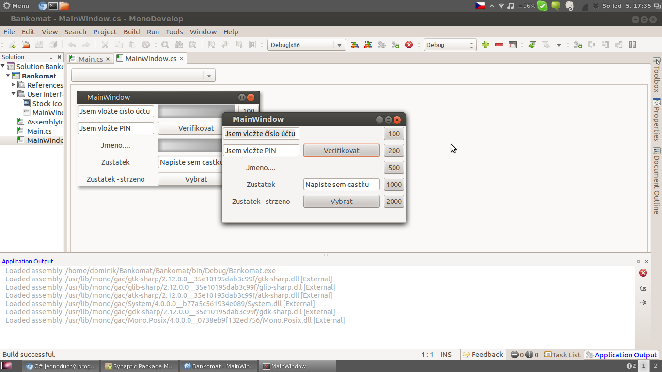 zadat("Kolik peněz chcete vybrat:", &castka);Prostě jí použít pro každý údaj zvlášť, myslím že takhle by ten formulář pro ní vyšel mnohem jednodušší. Stačilo by naťukat číslo a odeslat buď myší klikem na tlačítko, nebo klávesou Enter.