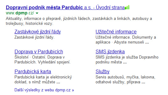 Zdravím, u některých výsledků vyhledávání na Google-u se mi stává, že se zobrazí nejen hlavní záznam webu, ale i některé podkategorie (viz. screen). Jak se toho dá docílit, aby se to zobrazovalo i u mého webu?