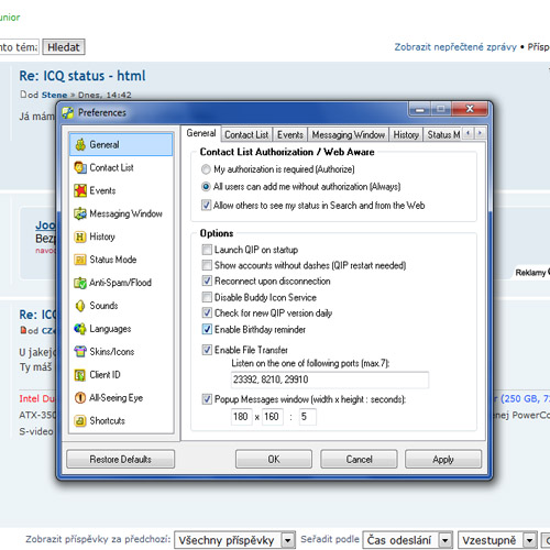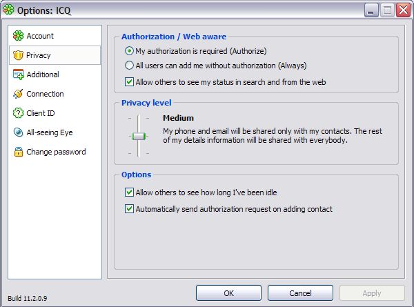 Asi máš jinou verzi, já mám infium a mám to pod záložkou účty->ICQ mrkni jestli to není někde tam taky :)