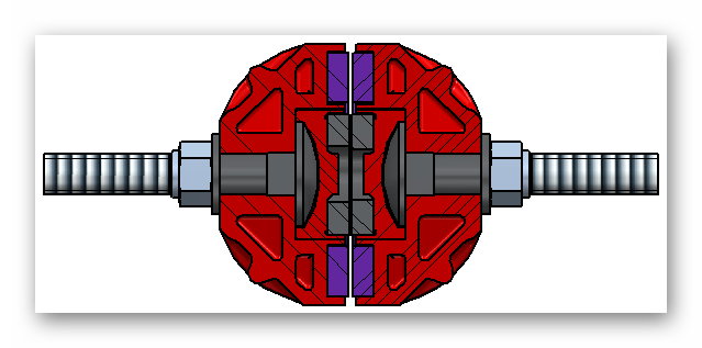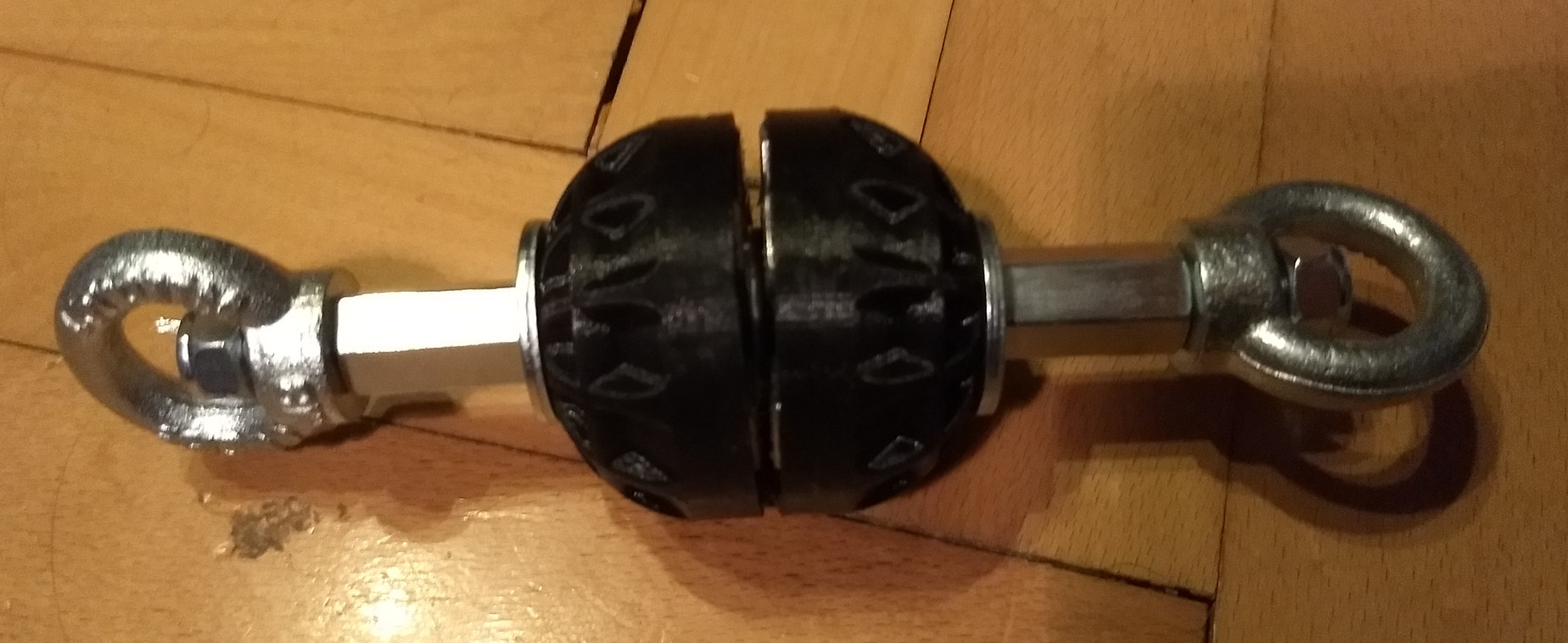V rámci práce na ledkové supersvítilně jsem si vyrobil vzorek magnetické spojky. Dá se i koupit, ale brutální cena mě přesvědčila k výrobě. Svítilna bude mít výklopné segmenty a když s nima drcnu o překážku, tak pokud bude náraz dostatečně silný, segment se ve spojce protočí a tím ochrání šnekové převody elektomotorku před poškozením. Jinak bude fungovat jako pevný hřídel. Vzorek je momentálně po "ručních" testech. proto jsem konce hřídelí, jenž tvoří vratové šrouby osadil oky. Těleso a víčko na ložisko mě vytisknul kamarád na 3D tiskárně z PET-G. "Ruční" verzi drží pohromadě jen síla magnetů. Ta je vcelku značná. Spojka se protočí až při větším zatížení.