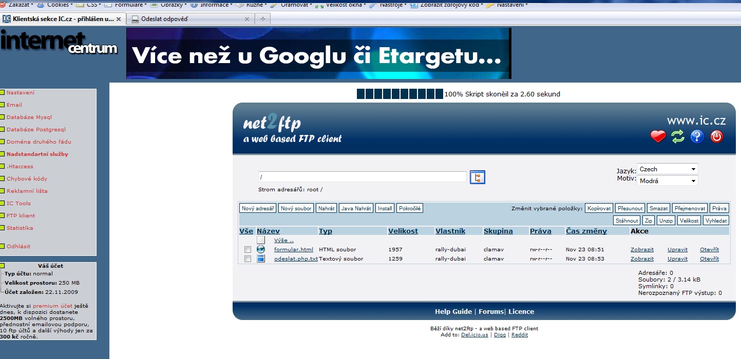 Tak jsem to upnul na ic.cz a když vyplním formulář a odešlu, zařve to stránka nenalezena - eror 404
