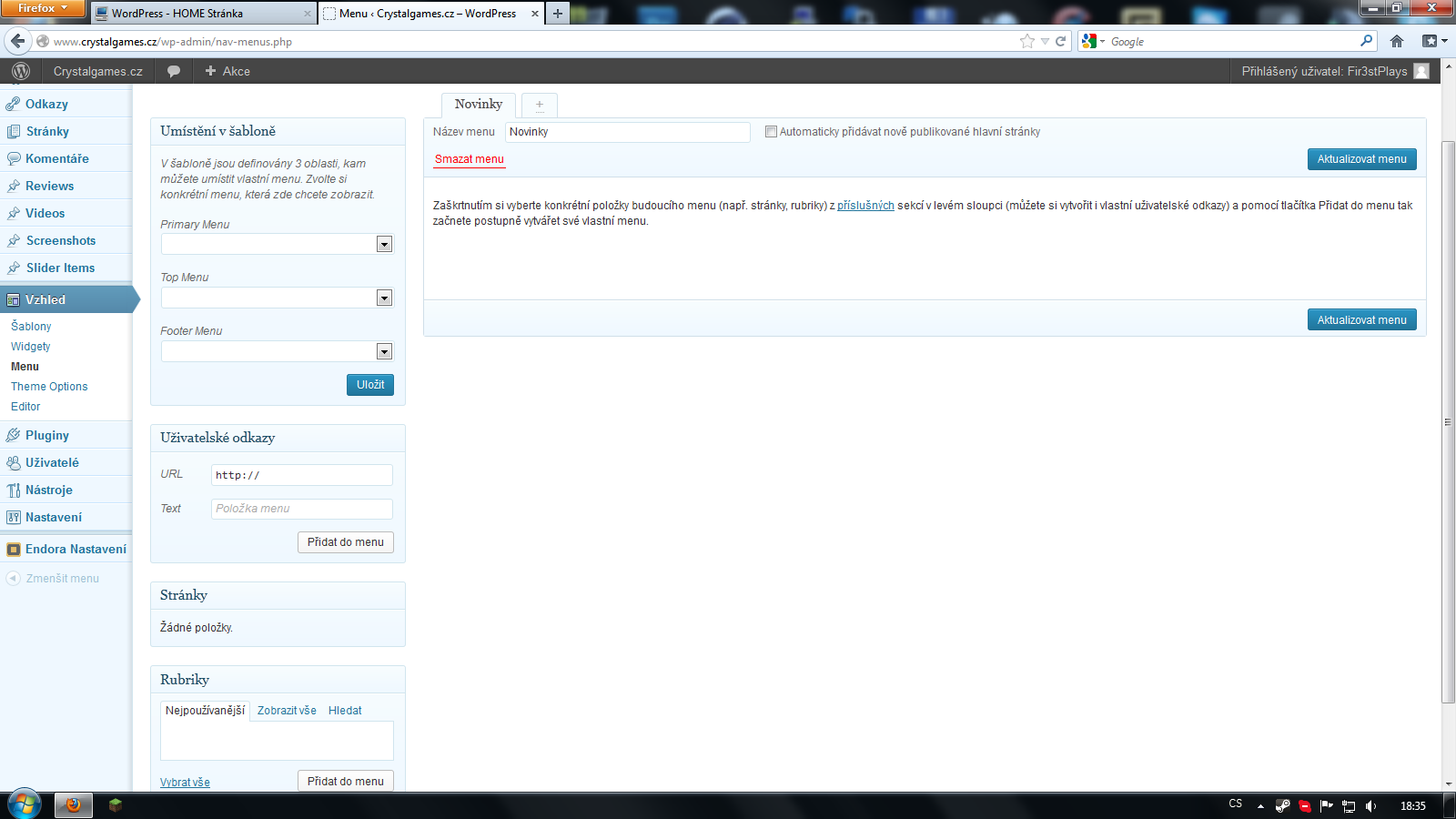 vlastním stránky www.crystalgames.cz a na hlavní stránku přes Wordpress a thémou Leetpress (zakoupenou) musím kliknout na logo abych se dostal na stránku kde píšu novinky :) nevíte jestli jde udělat do tich stránek např: pravidla, admin team a chtěl bych tam dát ty novinky ale nevím jak.