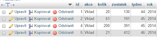 Díky za odpověď, já to myslím tím prvním způsobem, jenže nevím, jak zjistit, který zůstatek je poslední (pravděpodobně ten s nejvyšším id, ale nevím, jak to zjistit...). Výběry zatím neukládám, když jsem pokladničku programoval, myslel jsem to tak, že si pouze Akci označím Výběr a potom mi logicky dojde, že částka se odečítá. Když bych to chtěl ale zautomatizovat, udělal bych to nějak takto (kód je jen ilustrační!):
