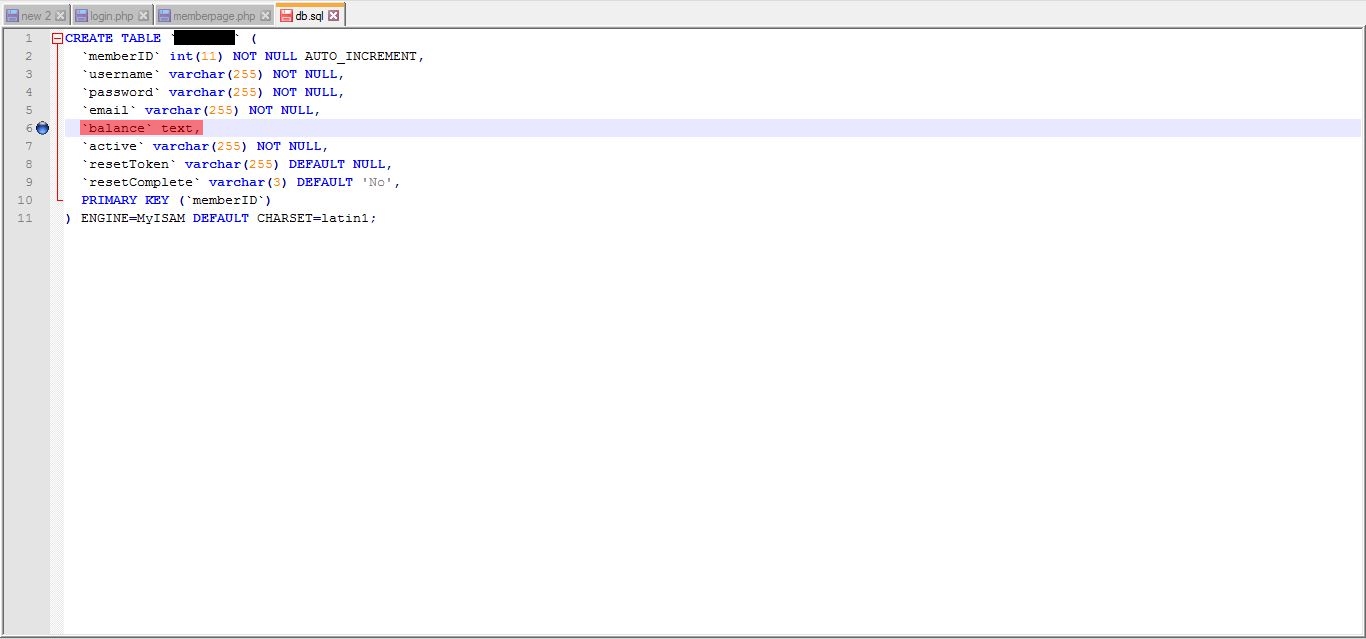 $stmt = $this->_db->prepare('SELECT password, username, memberID, balance FROM members WHERE username = :username AND active="Yes" ');