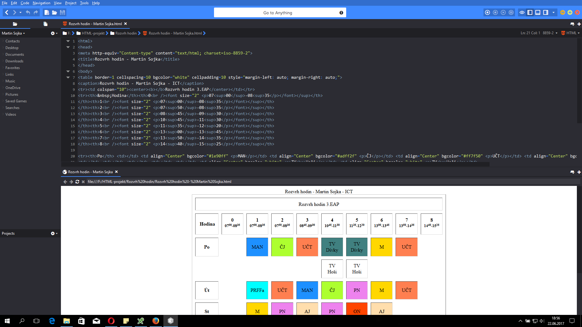 HTML - rozvrh hodin