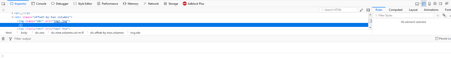 Nic takového tam právě nemám, to bych hned věděl kde hledat. Když se koukneš na první obrázek tak je vidět, že zaprvé je ta oblast označená nějakou vzláštní značkou a zadruhé to nenajde žádnou konekci ve stylech ("No element selected" když je to označené). Navíc se to zobrazuje s # jako ID, což by mělo znamenat, že je to unikátní ale když dám víc obrázků vedle sebe tak je to mezi každým obrázkem to samé.