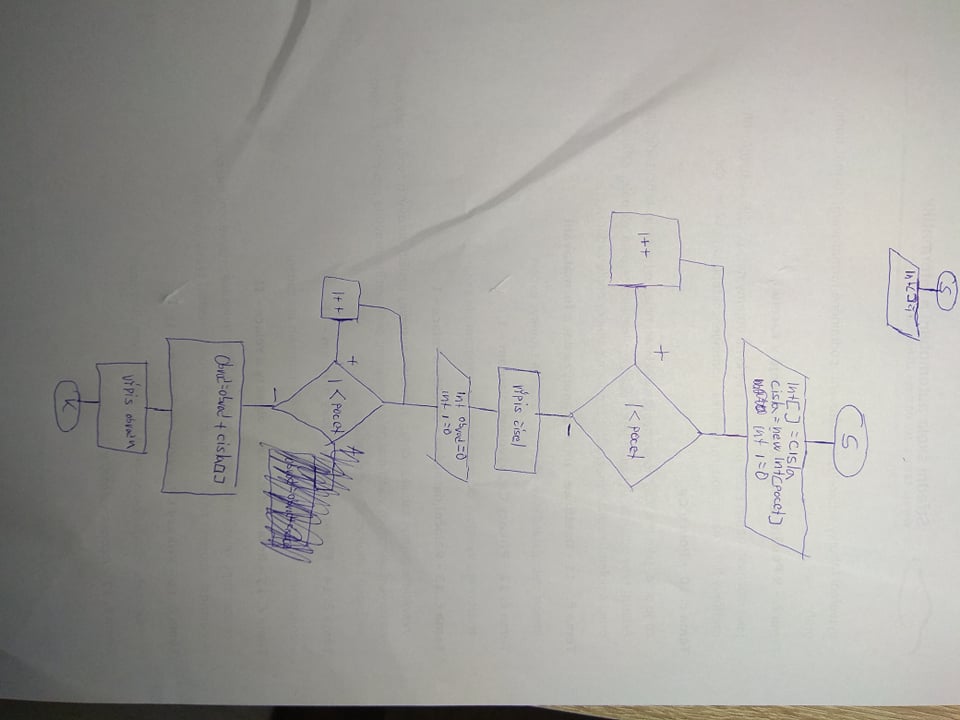 Kosodélník je symbol pro obecný vstup/výstup, nikoliv deklarace proměnných nebo zpracování. Deklarace je viditelnější v komentáři a zpracování je čistý obdélník. A co dělají ty prázdné cykly? Navíc ležatý kosočtverec - větvení - je vhodnější pro použití s goto v nestrukturovaných jazycích, zatímco normální cyklus se značí šestiúhelníkem, který ho může uvozovat i z obou stran, podle typu cyklu.