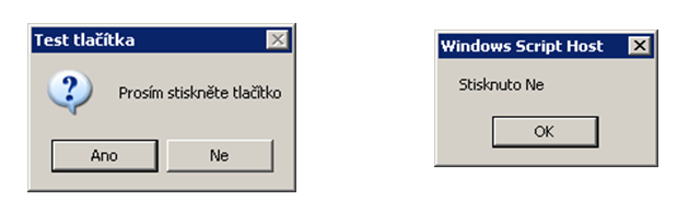 - příkaz Wscript.Echo - funguje podobně jako MsgBox, je to však jen "zobrazovadlo". Nevrací stisknuté tlačítko a nelze si zvolit titulek okna. Používám jej pro kontrolu hodnot proměnných během ladění.