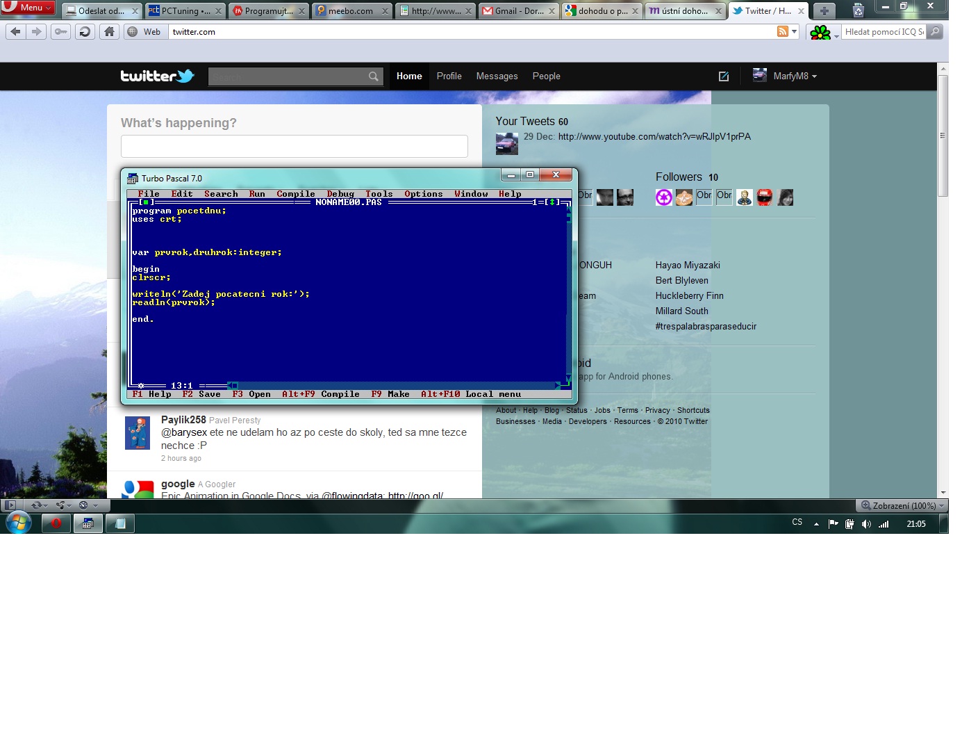 pocdnu:=pocdnu+delkaroku;tohle mi nějak nepobrali moje dvě poslední buňky. Ne mam turbopascal, ale otevřených několik verzí a upravim to v bloku (jako pas) a jen přetahnu na ikonu pascalu a spustim ... v pascalu je aj a to mi trvá