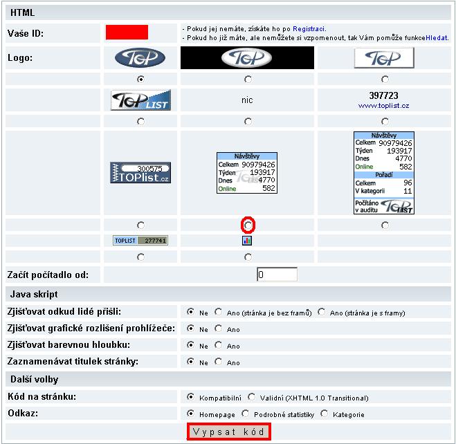 V toplistu - kód na stránku - nastavit jaké počítadlo chceš, pak ti to vygeneruje kód.