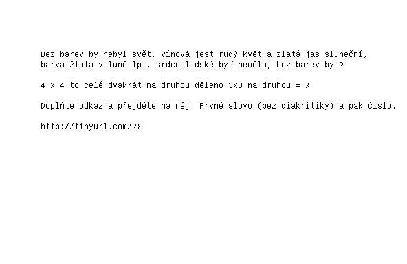 Čekal jsem větší odezvu, poněvadž já osobně jsem do takových věcí zapálen, tak jsem předpokládál, že mohou být i někteří ostatní. Zřejmě ale chybí silná motivace, nebo není čas a chuť. Upozorňuji ale, že ač první úkol vypadá dosti nudně, ostatní jsou kreativnější... úkoly jsou původně vytvořeny tak, aby nebyly vygooglovatelné, tudíž originální.