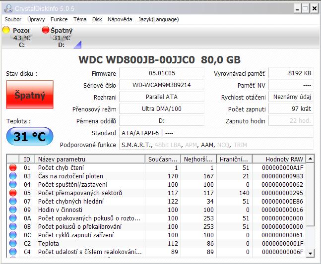 Ano kaput a ještě se podívej na ten první disk co hlásí Pozor, ten je taky na odchodu a ještě k tomu má vyšší teplotu.