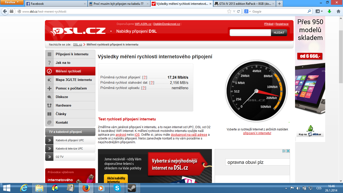 vse ti jede dobre. jen ten upload druhe strany je pomaly. dej si test rychlosti na www.dsl.cz, srovnej s tvoji smlouvou a pak napis