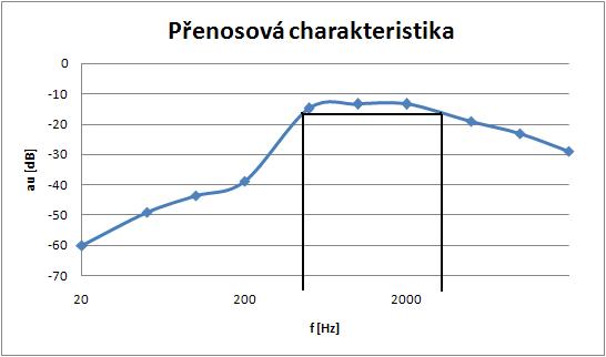 ten vztah pro zjištení pásma který napsal Magnat se dá odvodit přes integrály a je to 1/(odmocnina ze 2) a je to těch 0,707 , jak jsi psal cca 70% max. hodnoty ... ale já v tom grafu to udělal tak, že jsem si udělal novy sloupec tabulky (prenosova charakteristika) je to 20*log (U2/U1). z toho vyslo ze max je -13dB, a tady to neni pokles o 0,707 ale o 3dB. takze -16dB a tam kde protíná charaktristika -16dB jsem vynesl pro jaké frekvence a z toho je ta šířka