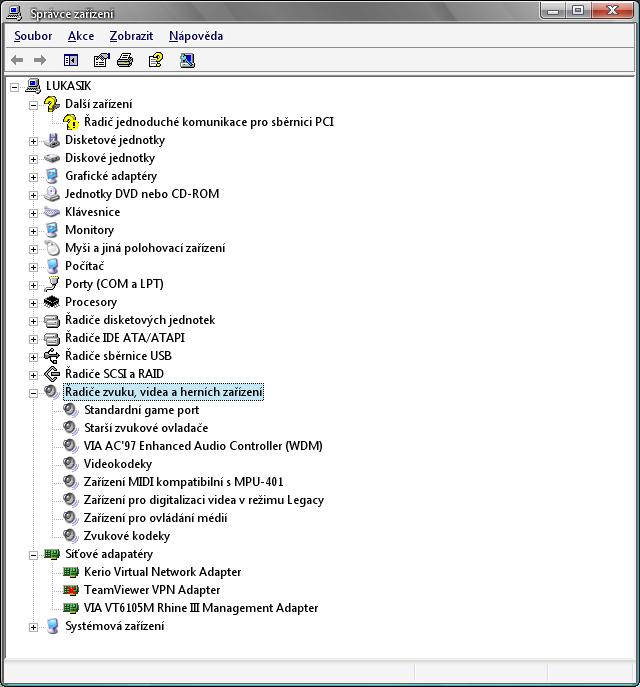 Ale nenainstaloval jsi potřebné ovladače z CD k základní desce - viz chybějící ovladače PCI - Nainstaluj!