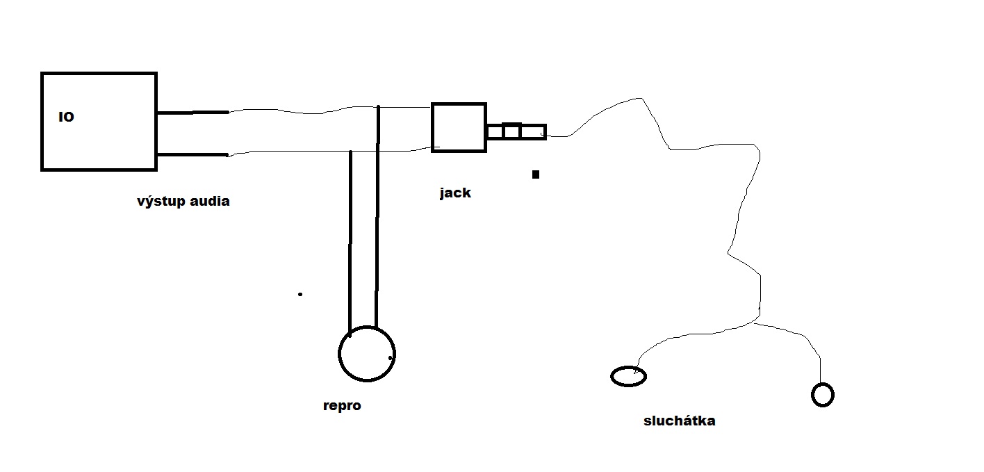 Tak je zase rozděl, odměř, co je který a jacka zapoj tak, aby když už to děláš hodně jednoduše, byl opravdu paralelně s reproduktorem, ale po vyndání sluchátek Ti NEZKRATOVAL výstup. Pak Ti to pojede.