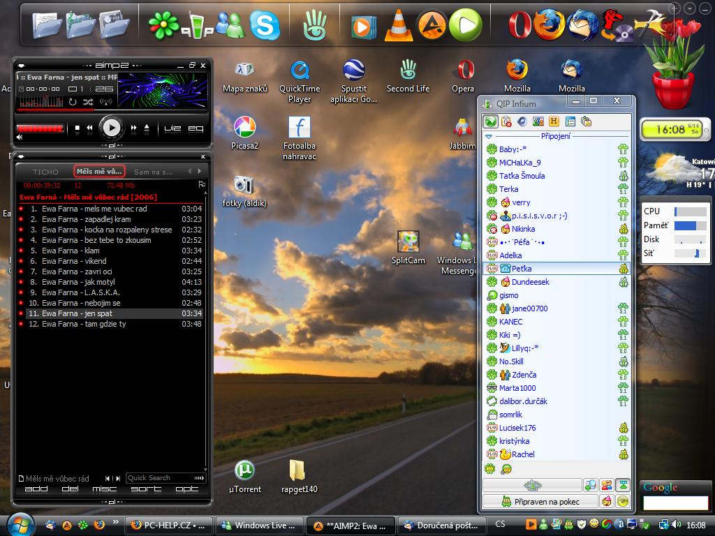 moje plocha vypadá aktuálně takhle .. schválně sem neminimalizoval AIMP a QIP