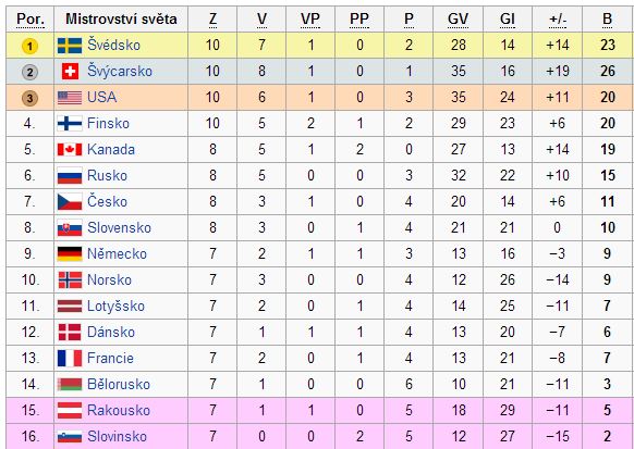 Jak jsou skupiny pro olympiádu? Hraje se tam stejně jako na MS - skupina 8 týmů a 4 postupují?Dead píše:Skupina pro MS vypadá možná dobře, ale základní skupina pro olympiádu je vcelku špatná. Máme tam oba letošní finalisty, tzn. Švýcarsko, Švédsko a jako bonus Lotyšsko. No, uvidíme, budou se muset chlapci snažit.