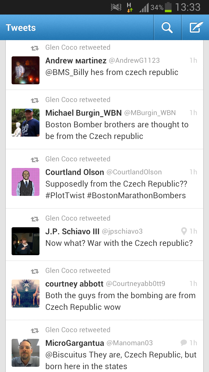 Česká republika může být v Indii. Podle některých by mohla být v Asii. „Jsou z Česka, vyslovuje se to [chuhkesh]. To je v Indii, nebo kde?“ Objevily se i poněkud konkrétnější informace: „Česká republika má dobré pivo, krásné ženy a muže, kteří rádi zabíjejí atlety,“ píše jedna dívka. Úplně přesné informace nepodala ani média. V deníku New York se mělo objevit, že „Čečna je předměstí Československa.“ To měly převzít i CNN a BBC. Mnozí Američané se nejspíš domnívají, že anglický název pro Čečensko (Chechnya) je zkrácené pojmenování pro Českou republiku.