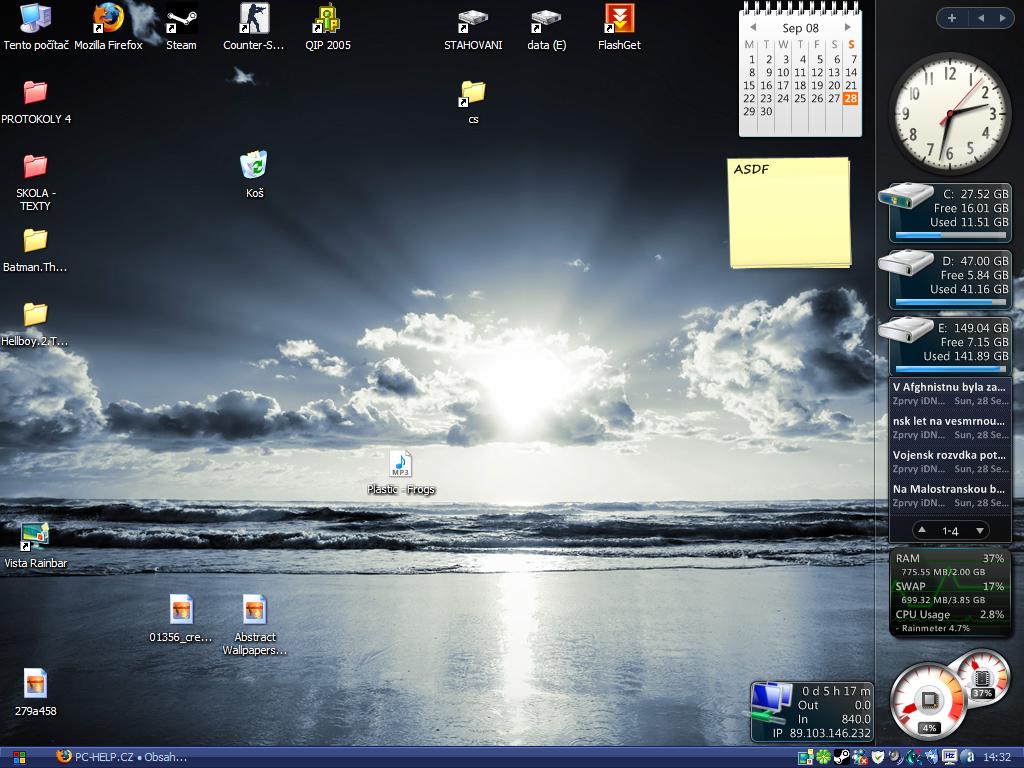 tak tady je mensi update , jeste bych si tam chtel dat to pocasi ale neslo mi to :/ pokud by mi nekdo poradil budu rad (google jsem pouzival ...).Mam XP SP2 a ten panel je Vista Rainbar
