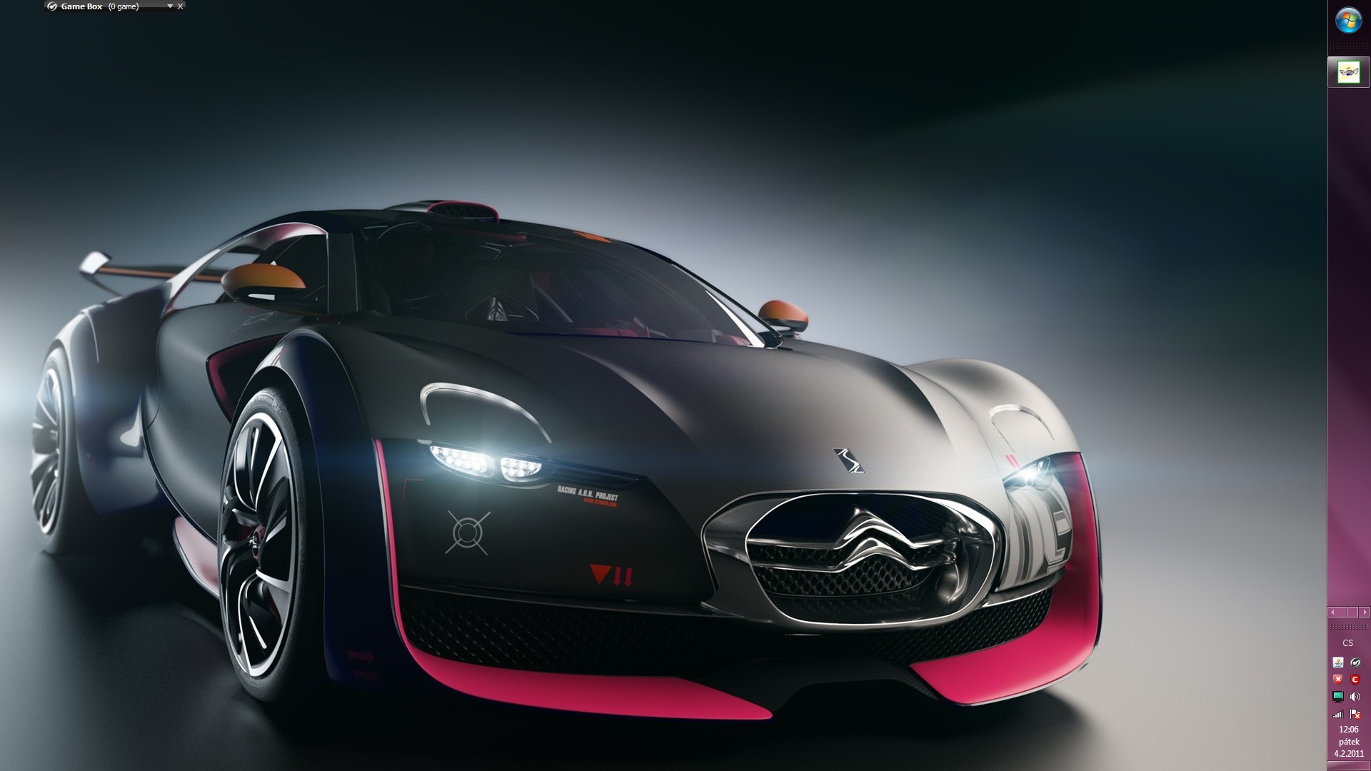 Zdravím a oživuji mou novou tapetou :) Radši jsem zakryl ikony, protože tam mm strašnej bordel :) No a kdyby to někoho zajímalo, tak auto na obrázku je Citroen Survolt, který je sice nádherný, ale má elektromotor, takže stojí za prd