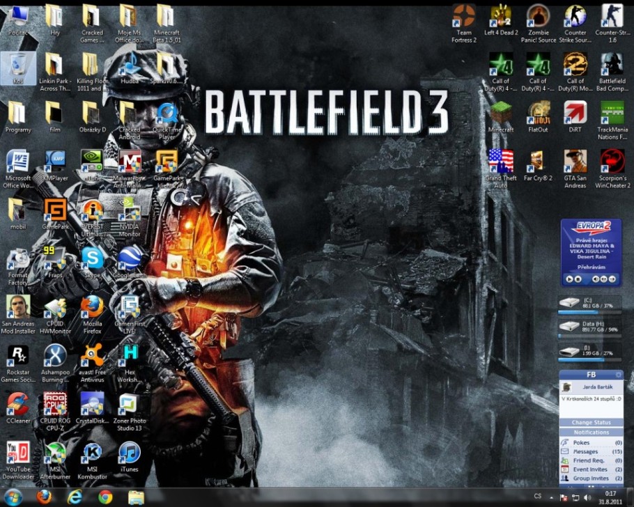 Také jsem upgradnul plochu, jestli se vám zdá pořád stejná, tak se nenechte mýlit, je na šířku o třetinu větší a na výšku o 56 pixelů