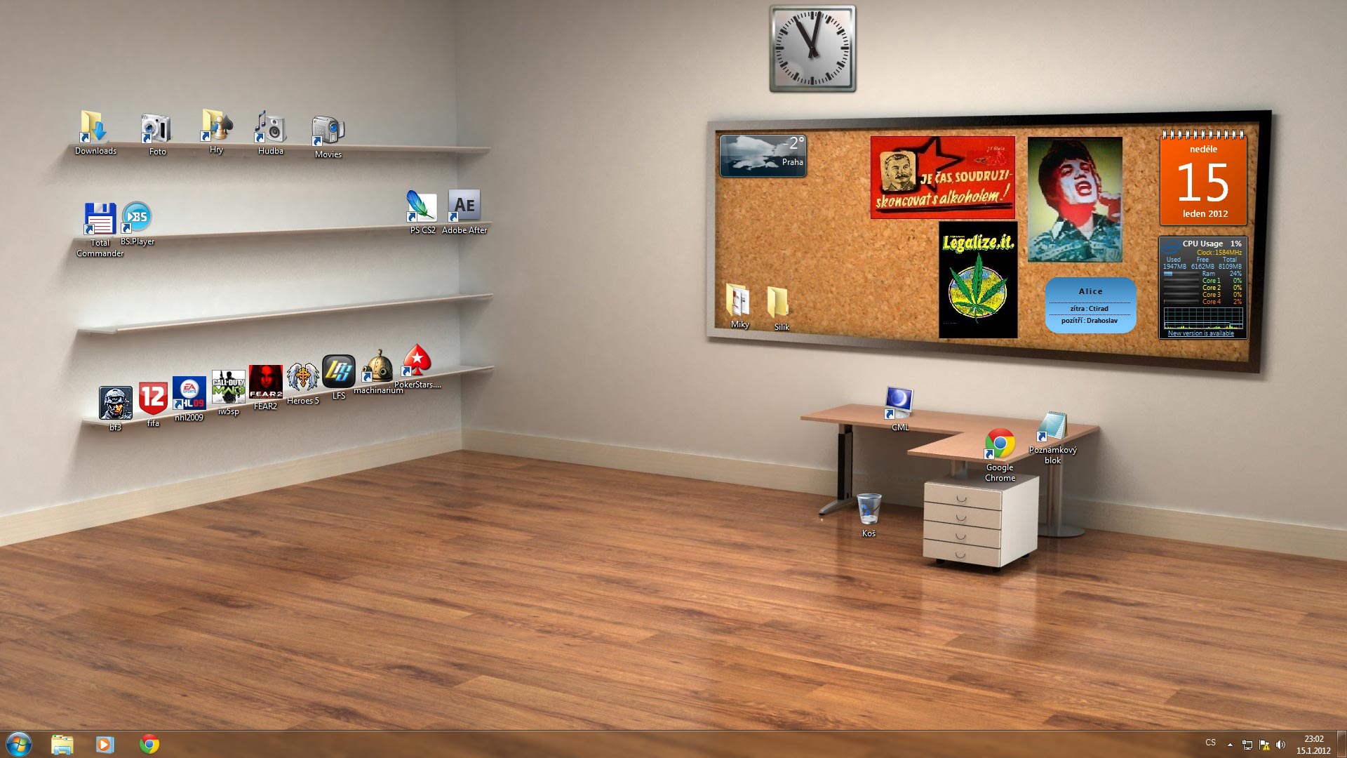 Tak takhle jsem dnes uklidil na ploše.... Stav predtim: cannabis kytka prekryta asi 101 517 ikonama chaotickym zpusobem serazeno