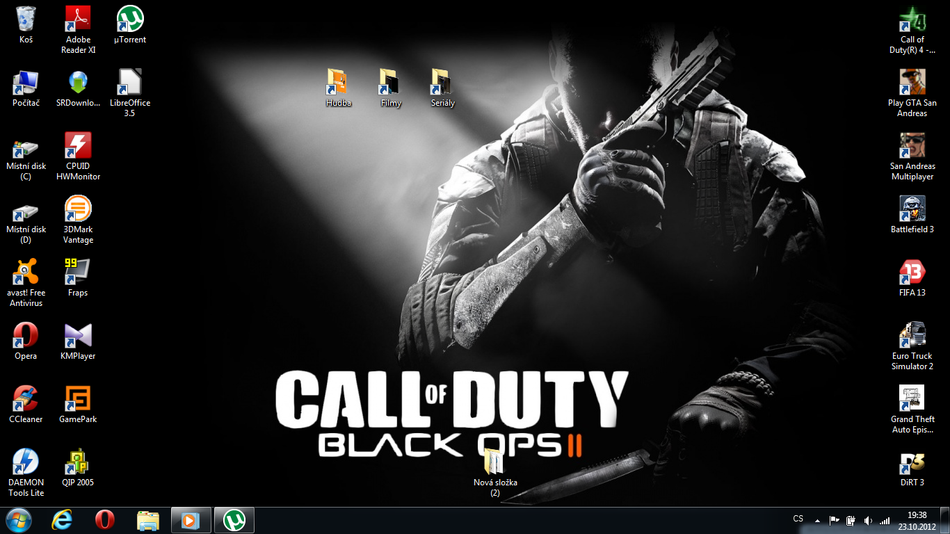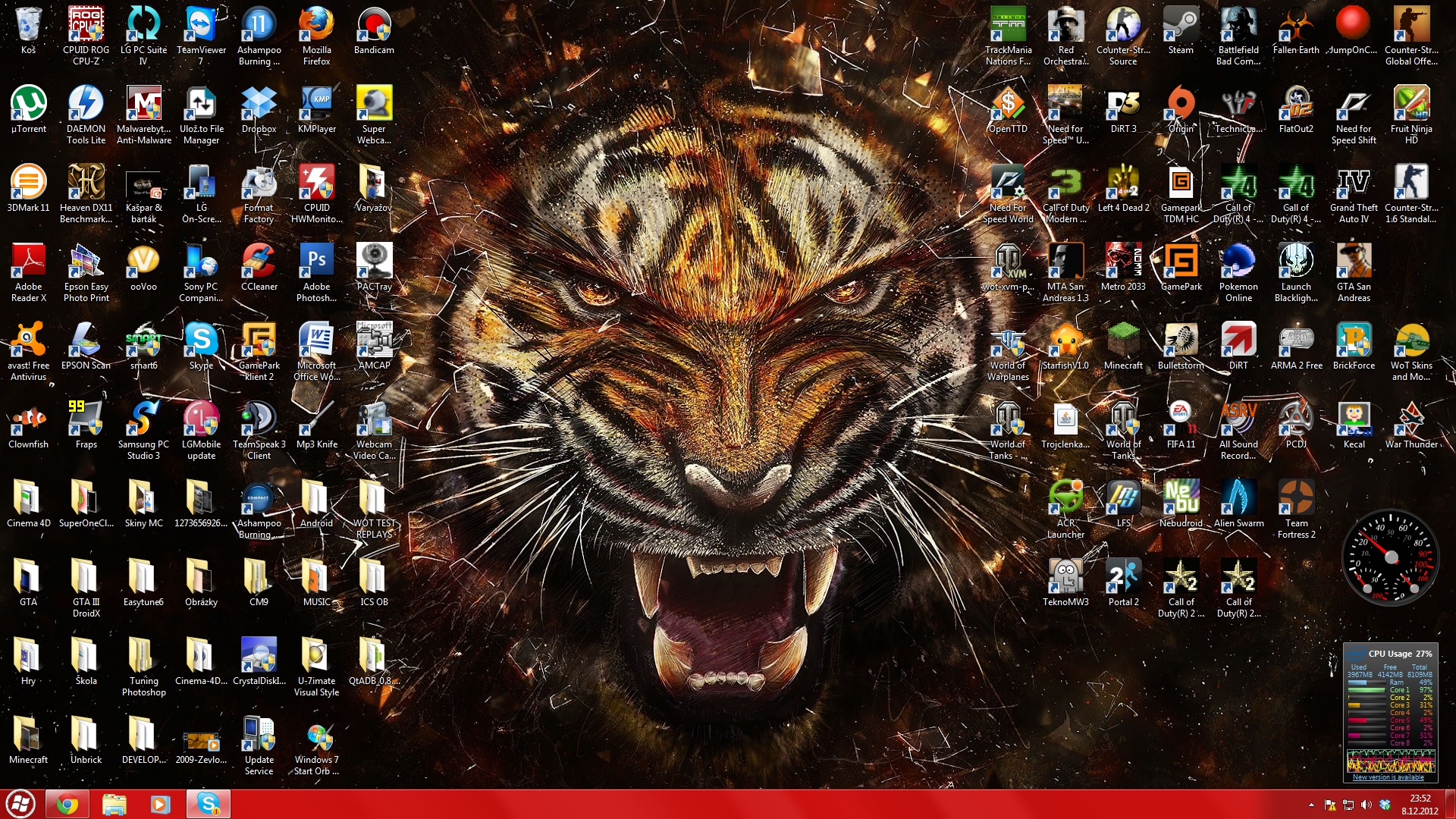 Na přaní uživatele FairHacker tu dávám screen plochy z PC. Nic novýho, jen wallpaper, na kterej jsem náhodou narazil a líbil se mi.
