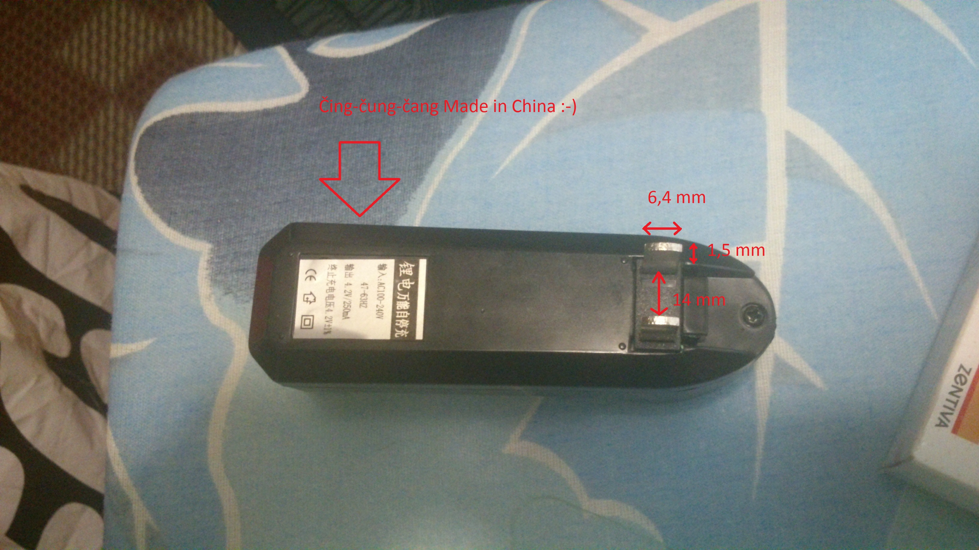 Zde je obrázek zástrčky nabíječky baterie... Jsou tam i rozměry kolíků... Prostě pevně věřím, že vše, podle čeho se dá určit, jakou přechodku potřebuji. :-)