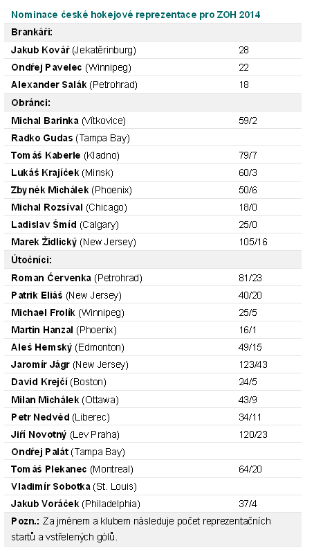 No jsem mírně řečeno nas... překvapen... nejede Hudler??? Vezme si tam zeťáka místo Hejdy?? Co tam dělá Kaberle, ten už dávno nemá na to aby jel na OH. Hemskýho mám rád, ale letos je o ničem... to bych vzal raději toho Hudlera!...