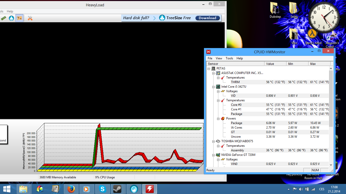 Tohle je špatně, v HeavyLoadu musíš zapnout CPU usage, tak, aby ta červená "čára" byla stále až nahoře. Pak sem dej po deseti minutách ten screen.