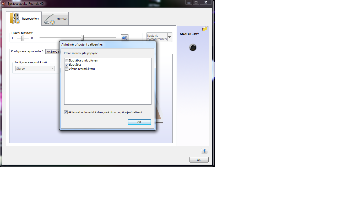 Nové sluchátka do NTB s mikrofonem pouze na jeden konektor Vyřešeno
