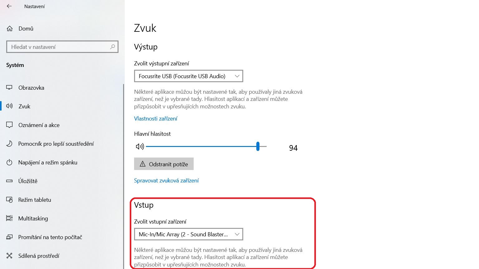 mmmartin píše:Nastavení zvuku > Vstup a tady vybrat mikrofon, který chceš používat. Budeš tam mít pravděpodobně na výběr něco jiného, než je v příloze. ;)