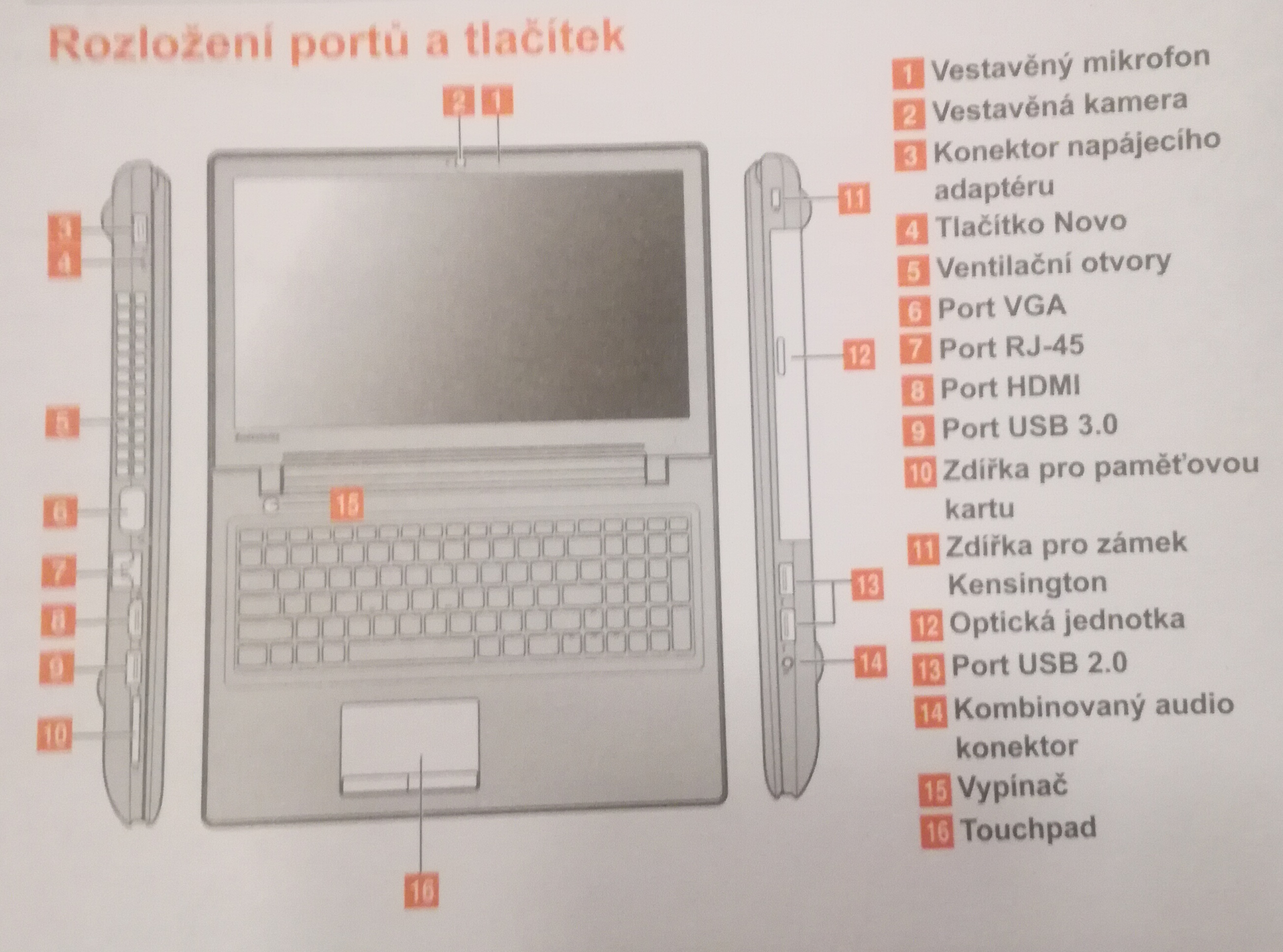 Pokud pomůže, zde máte fotku všech konektorů v notebooku.