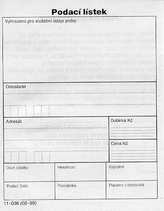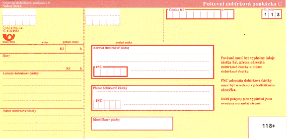 Při zaslání na dobírku se vyplňuje poštovní dobírková poukázka C a podací lístek