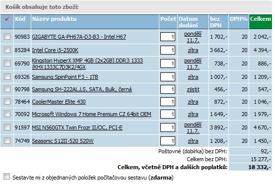Chtělo by to přesnější popis produktů, např. u RAM, disk. Starší i5 - blbost, když už, tak Sandy Beidge, nemáš zdroj. Nejlepší by bylo říct Tvůj cennový strop, abychom mohli navrhnout vhodné komponenty.