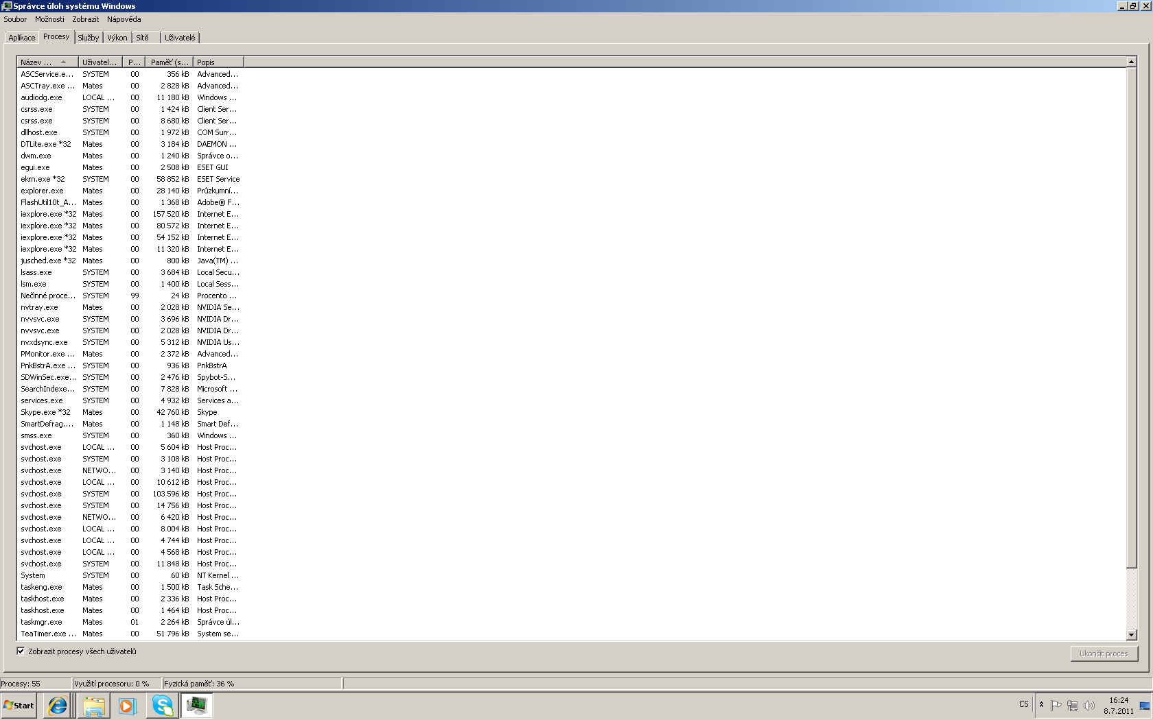 To, že tam máš některý věci 2x nebo víckrát je normální. Třeba u Internet Exploreru je to myslim tak, že kolik máš otevřenejch oken nebo záložek, tak tolik tam bude úloh.